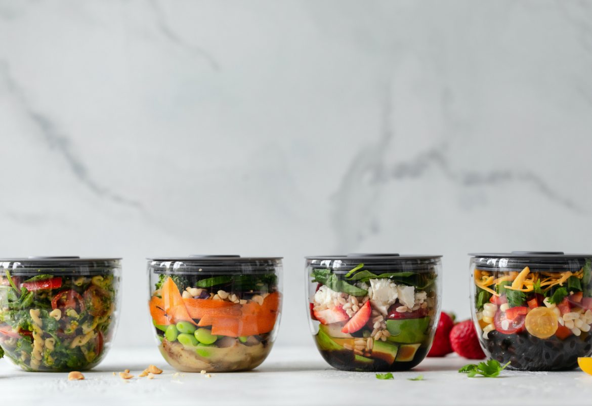 Some meals stay fresh in the refrigerator throughout the week, and others are better in the freezer. You can also prepare meals in deconstructed fashion (like salad jars and dressing on the side), so all you have to do is combine and eat when you’re ready.